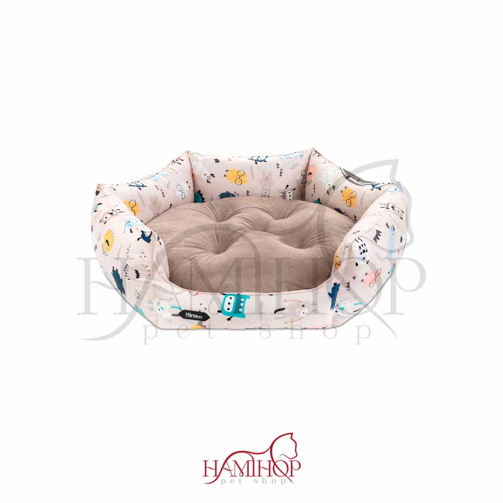 تشک سگ و گربه مدل شش ضلعی سایز 1 vip طرح غول رنگ بژ برند نیناپت ninapet