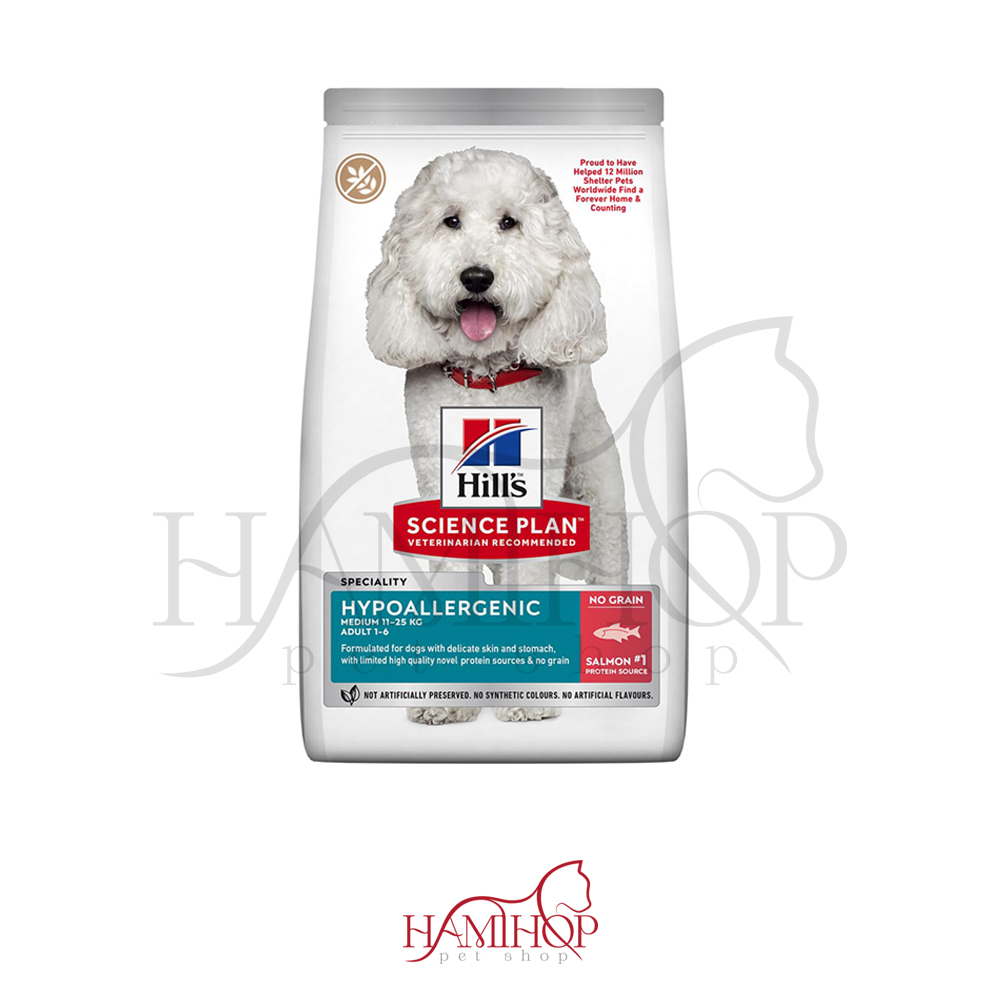 غذای سگ بالغ نژاد متوسط ضد حساسیت هیلز با ماهی سالمون ، یک محصول غذایی بدون غلات و ضد حساسیت است که به طور ویژه برای سگهای بالغ نژاد متوسط و کوچک فرموله شده است.