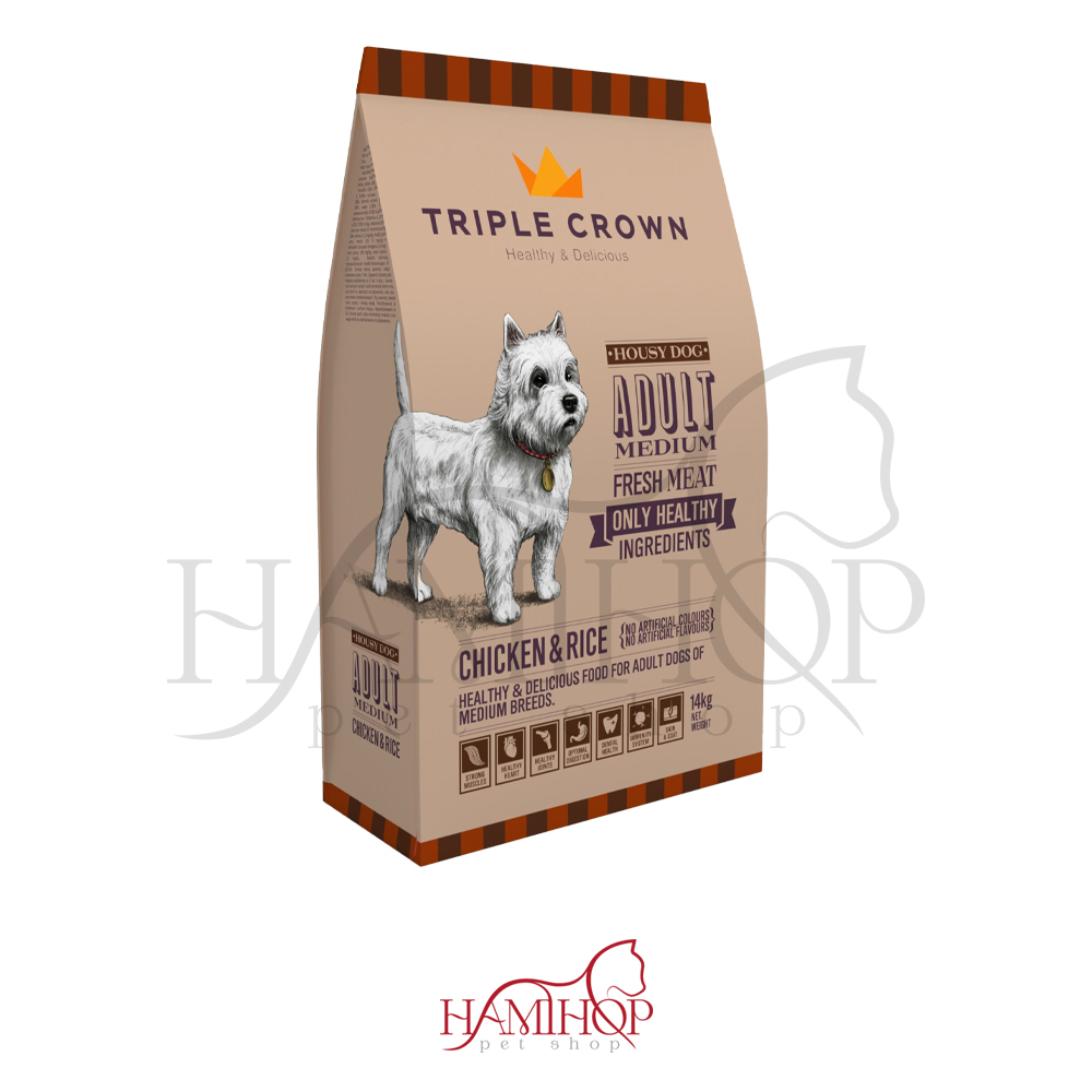 غذا خشک سگ بالغ طعم مرغ و برنج وزن 3کیلوگرم TRIPLE CROWN HOUSY DOG ADULT CHICEN & RICE
