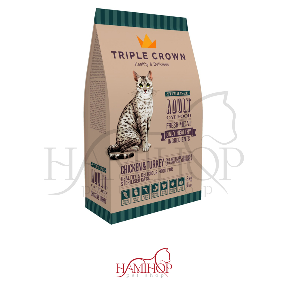 غذا خشک گربه بالغ عقیم شده طعم مرغ و بوقلمون وزن 2کیلوگرم Triple Crown Stirilized Cat