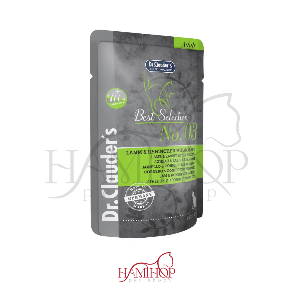 پوچ گربه بالغ دکتر کلادرز با طعم گوشت بره و گوشت خرگوش و ماهی آمارانا 85گرم Dr Clauder´s Lamb & Rabbit with Amaranth;
