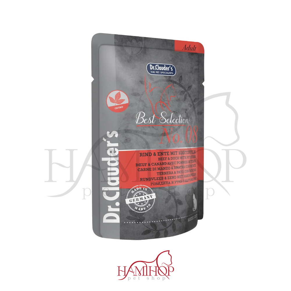 پوچ گربه بالغ دکتر کلادرز با طعم گوشت گاو و گوشت اردک و سیب زمینی 85گرم Dr Clauder´s Beef & Duck with Potatoes