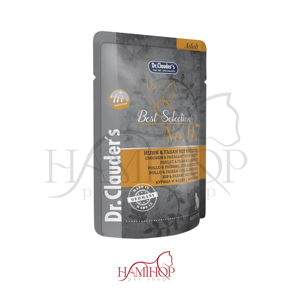 پوچ گربه بالغ دکتر کلادرز با طعم گوشت مرغ و قرقاول و زرد الو 85گرم Dr Clauder´s Chicken & Pheasant with Apricot