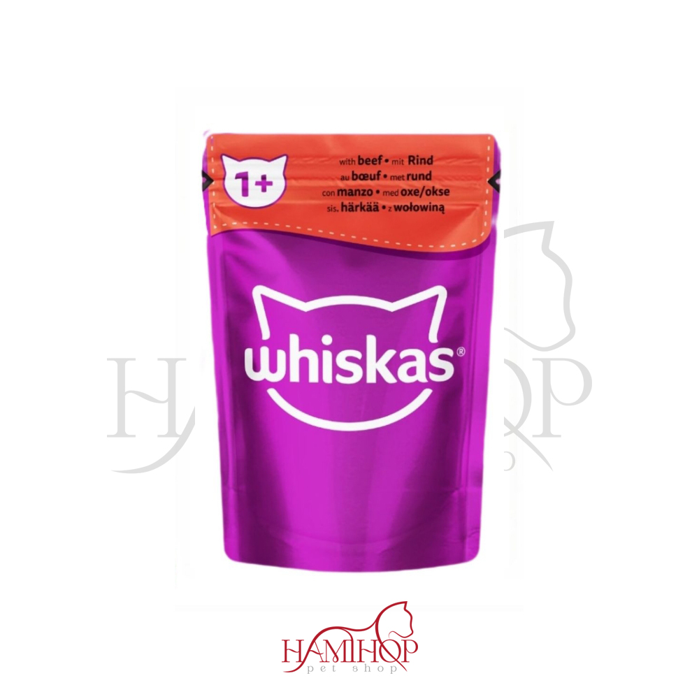 پوچ گربه بالغ ویسکاس با طعم کوشت در ژله وزن85 گرم ا Whiskas Pouch Adult Wet Cat Food With beef