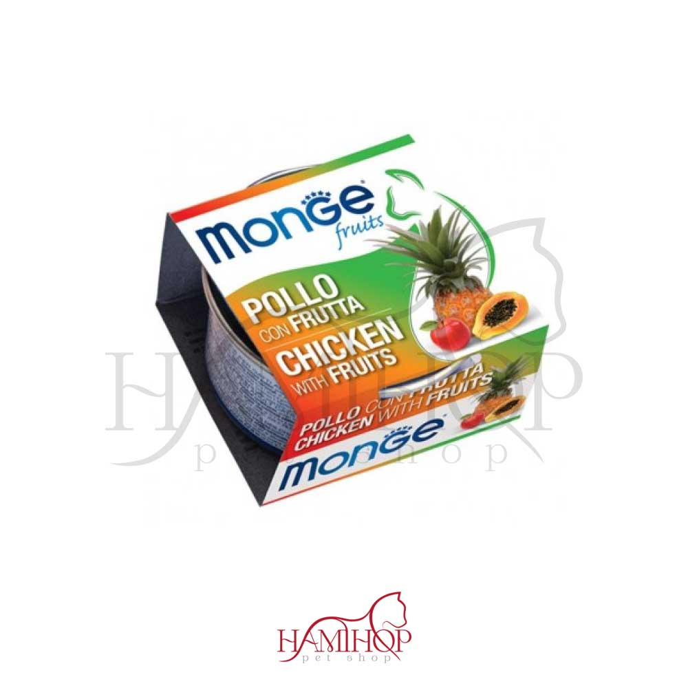 کنسرو گربه بالغ برند مونژه طعم تکه های مرغ با میوه وزن80گرم MONGE for Cats chicken/frutta 80G
