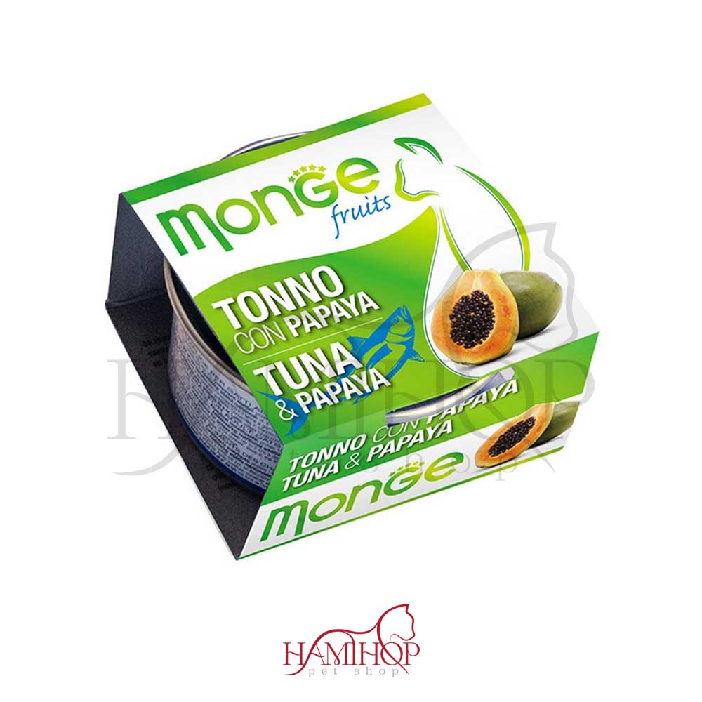 کنسرو گربه بالغ برند مونژه طعم تکه های ماهی تن با پاپایا وزن80گرم MONGE for Cats tuna/papaya 80G